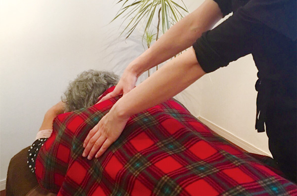 服を着たままの全身揉みほぐし。マッサージと骨盤矯正の手技をミックスした独自のマッサージで痛みやコリの根本原因にアプローチします。男性に人気のメニュー。